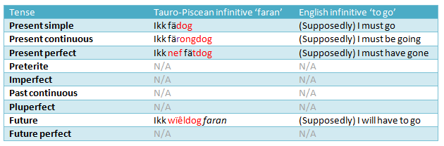 Tauro-Piscean dubitative (presumptive) verb conjugation