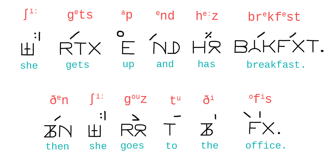 07:54, 25 July 2025 Izografia English example.png (file) 54 KB Havoc Crow An example of English sentences written in the Izografia writing system devised by Tadeusz Wójcik. Based on an example paragraph provided by Tadeusz Wójcik in "Młody Technik", issue 4/1972, p. 63. The black symbols are English sentences written by Izografia, as originally drawn by Tadeusz Wójcik. The blue text is the English text. The red text represents each Izografia symbol (consonants and vowels) as letters and symbols familiar to English speakers; elongated vowels are represented wi... 1